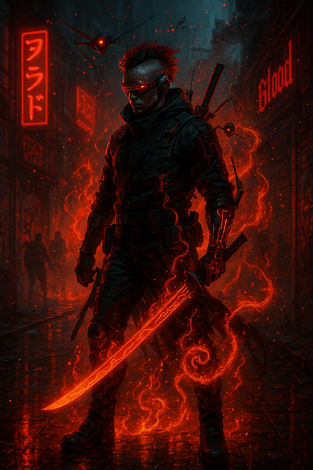 Explanation: Bloodfire is a biome of volatility: the ignition chamber where sacred rage, erotic radiance, and tactical brutality converge. It is not strength as a virtue, but force as an inevitability. When it appears in a reading, expect confrontation with both desire and discipline: animal impulse under cybernetic oversight. It encodes the eruptive friction between submission and dominance, and demands the querent choose neither, instead engineering a third vector: sovereign transmutation.